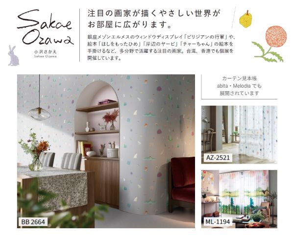 絵画制作を中心に、絵本や挿絵も手掛ける画家の小沢さかえさんとのコラボレーション商品を収録しています。